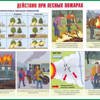 — бегите вдоль фронта огня; не обгоняйте лесной пожар; для преодоления нехватки кислорода пригнитесь к земле;