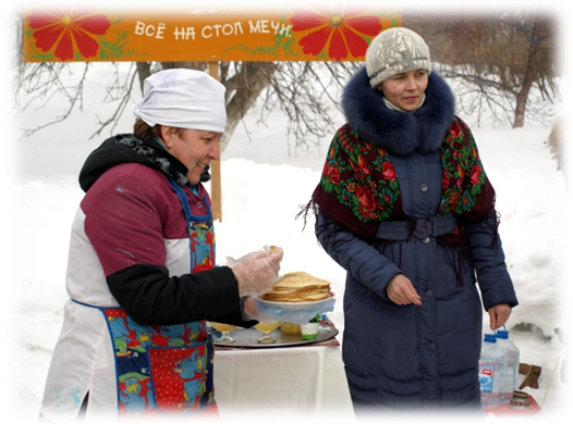 Все желающие угощались блинами, приготовленными с любовью нашими хозяюшками. И традиционно завершилось гулянье после того, как полыхнуло соломенное чучело на радость всем собравшимся!