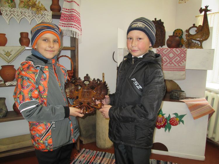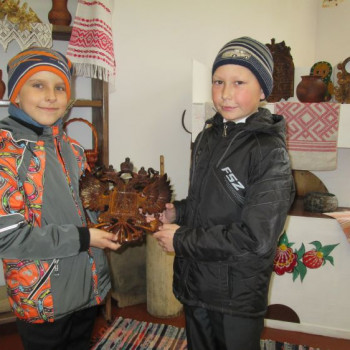 Во время мероприятия Ксения Юрьевна рассказала очень много интересной информации, по народным промыслам белорусов, тем самым расширяя представления детей о разнообразии предметов рукотворного мира. Были показаны ручные работы: плетения из лозы, соломоплетение, кружевоплетение, гончарные и самотканые изделия, с особенным вниманием и интересом ребята разглядывали работы «Резьба по дереву» автором которых является заслуженный работник культуры Харитонов Александр Николаевич. В основном все работы это музейные экспонаты, каждый – выражение богатого внутреннего мира мастера, его видения красоты.