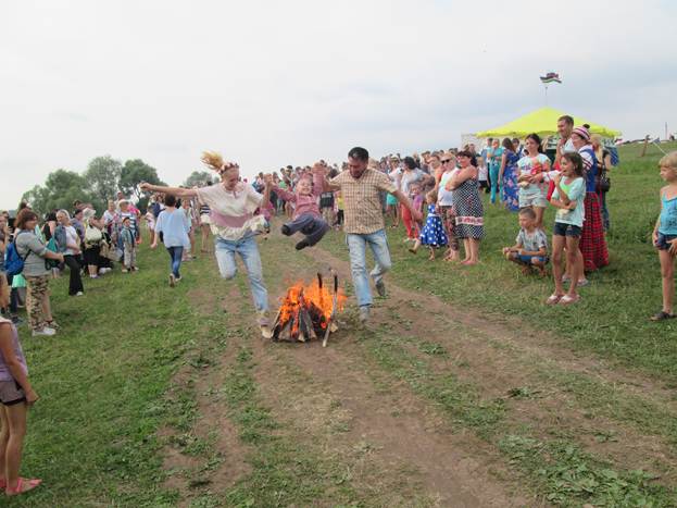 В соответствии с древними обычаями на поляне развели костры, прыгая через которые очищаешь душу и получаешь здоровье. Необычно зрелищным было зажжение большого купальского костра, вокруг которого водили хороводы, пели песни. Пускали с пригорка главный символ праздника- зажженное колесо.