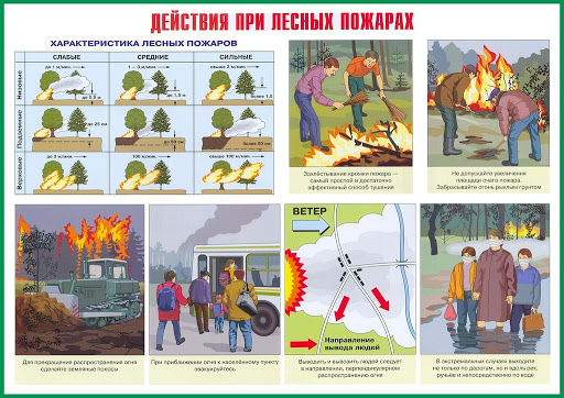 — бегите вдоль фронта огня; не обгоняйте лесной пожар; для преодоления нехватки кислорода пригнитесь к земле;