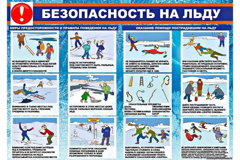 * ЗАПРЕЩАЕТСЯ: выходить на лед в состоянии алкогольного опьянения, прыгать и бегать по льду, собираться большим количеством людей в одной точке, выходить на тонкий лед, который образовался на реках с быстрым течением.