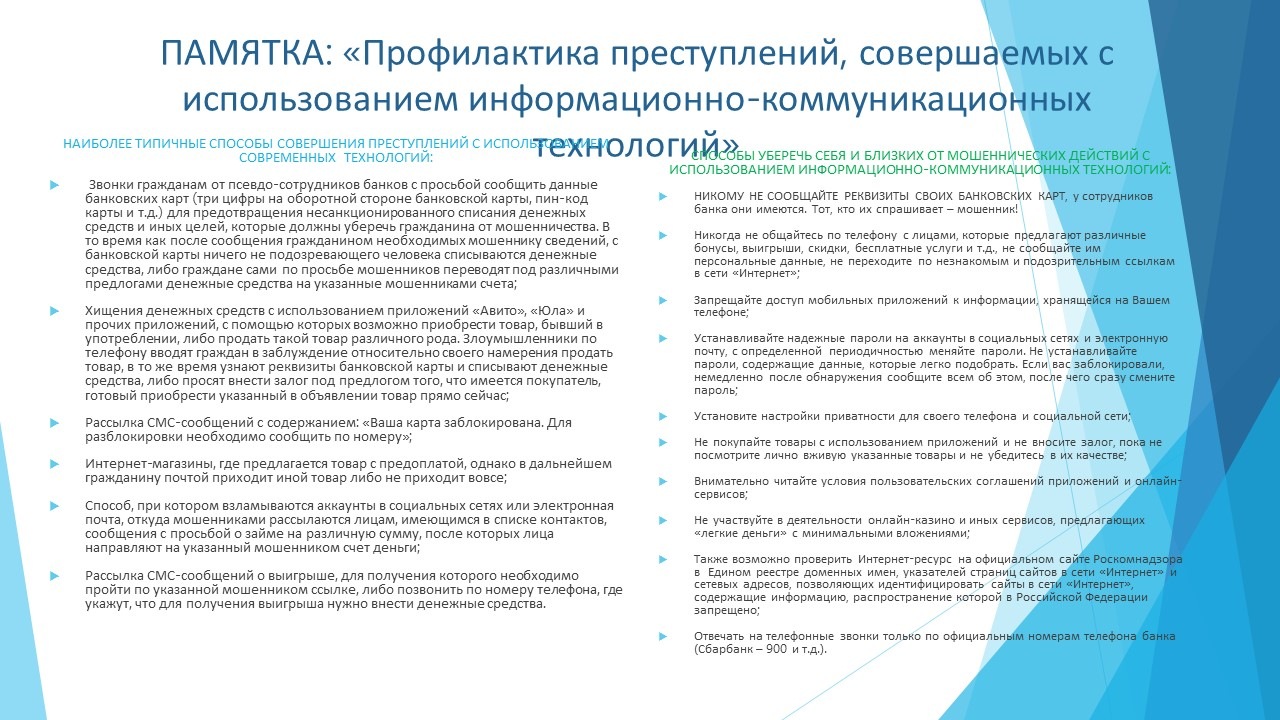 ПАМЯТКА: «Профилактика преступлений, совершаемых с использованием информационно-коммуникационных технологий 28.06.2024 10