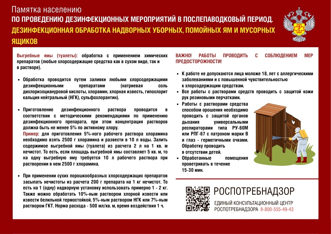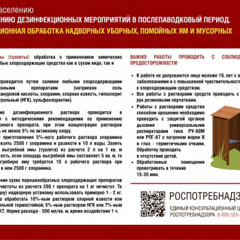 В послепаводковый период необходимо проведение следующих санитарногигиенических и противоэпидемических мероприятий: